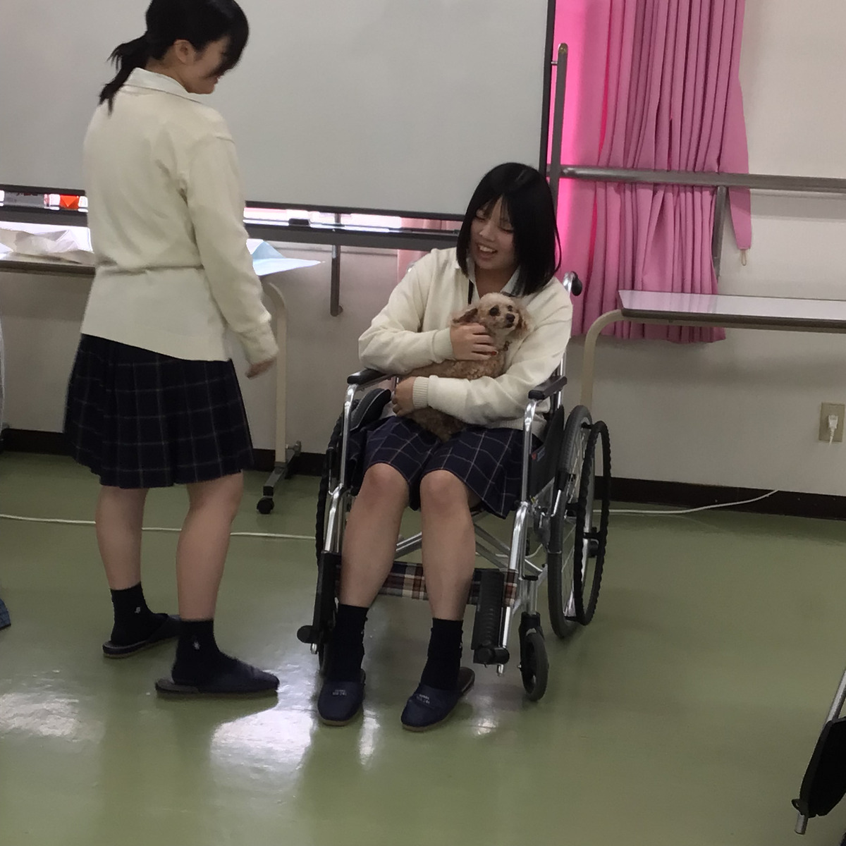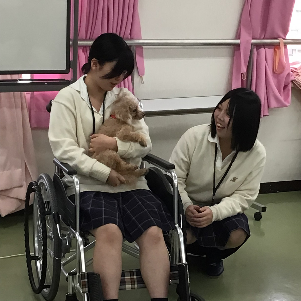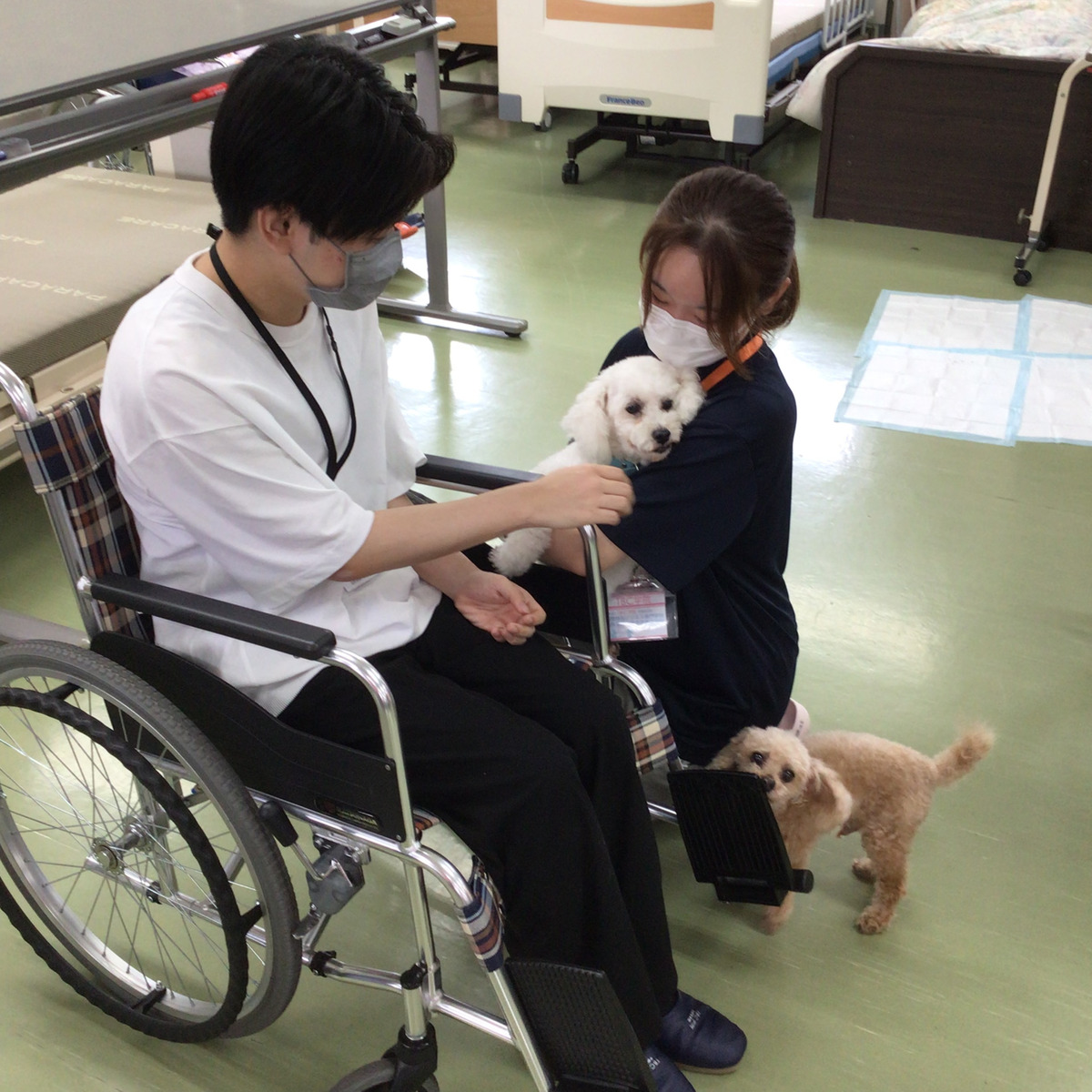9/20(土)のOCで大人気企画「アニマルセラピー」を行いました。アニマルセラピーは癒やしやストレス解消、情緒の安定の他、生活意欲の向上も期待できるとして医療や福祉の分野で取り入れられています。今回はかわいい2匹のトイプードルが来校!ワンちゃんの扱い方やお年寄りになった気分で実際に癒やしを体験してもらいました!次回のアニマルセラピーは11月8日(土)興味がある方はぜひご参加ください!!