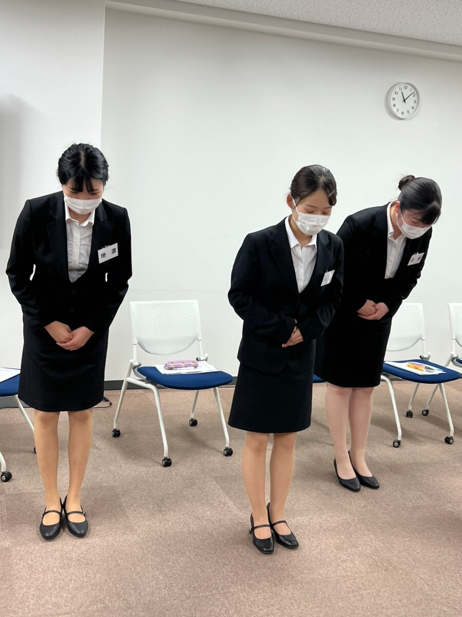J-Presence Academyで1年生・2年生それぞれが医療人として。社会人としての基本を学びました。面接の基本から本番同様の緊張感漂うロールプレイングまでしっかり研修しました☺