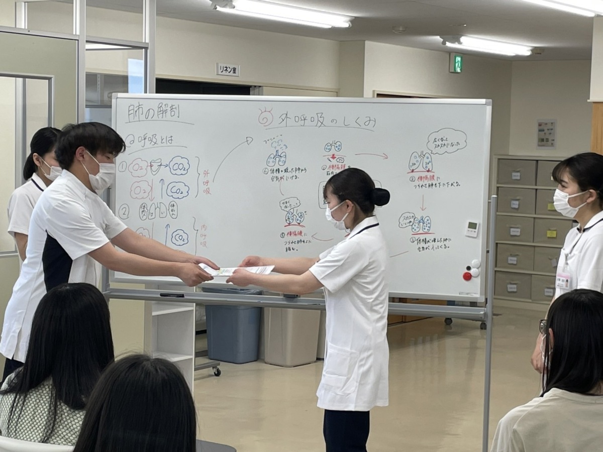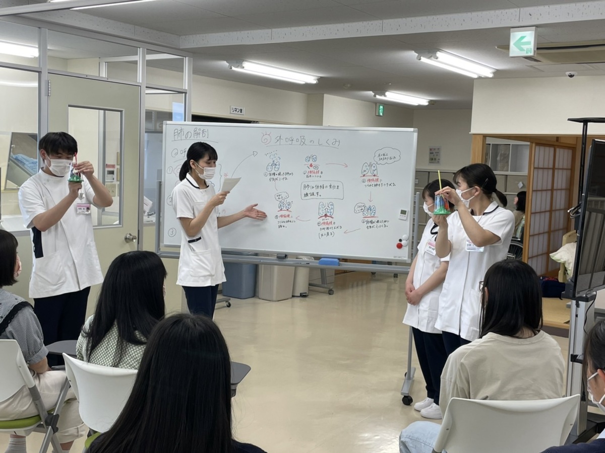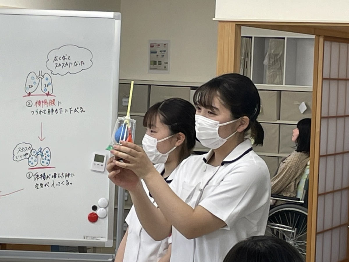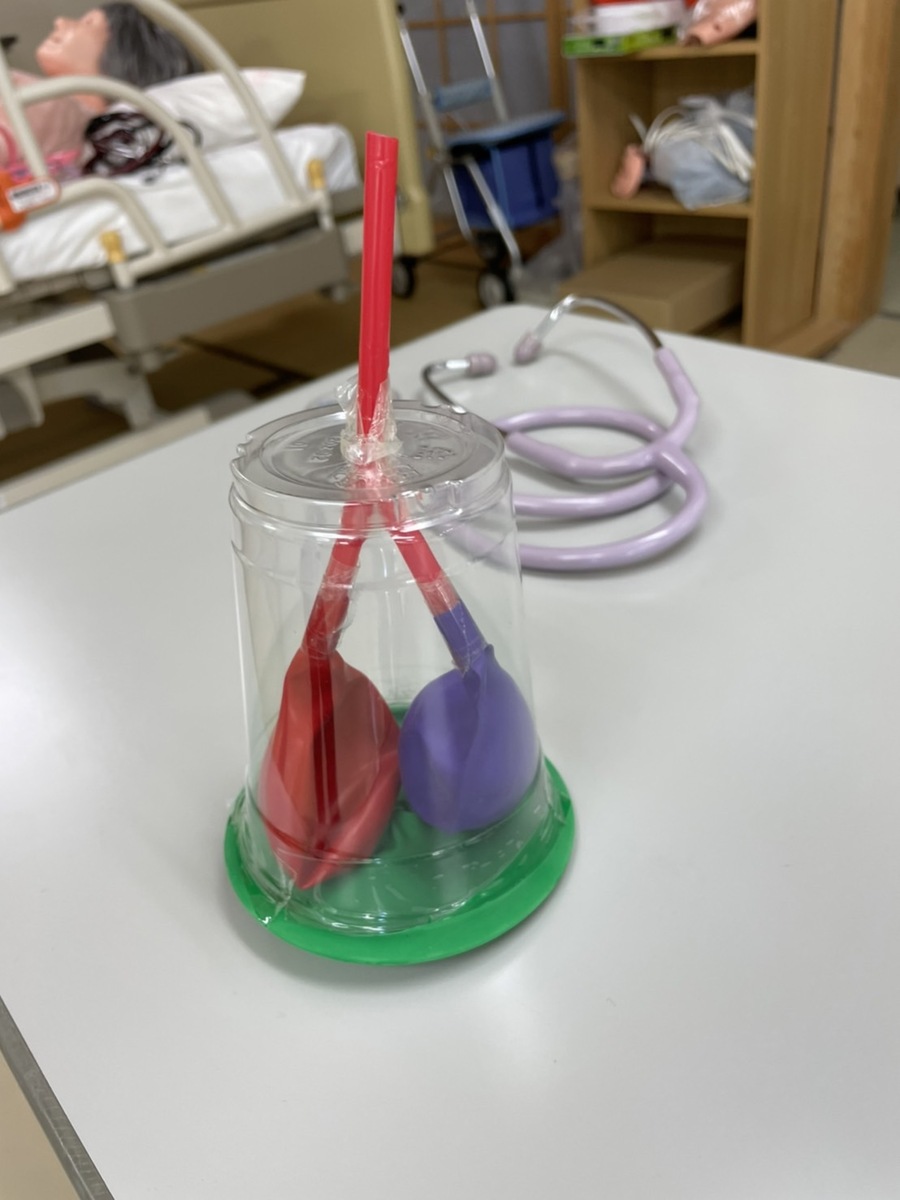 看護学科の学生が企画して講義しました!解剖をわかりやすく説明するために肺のモデルを作りました!