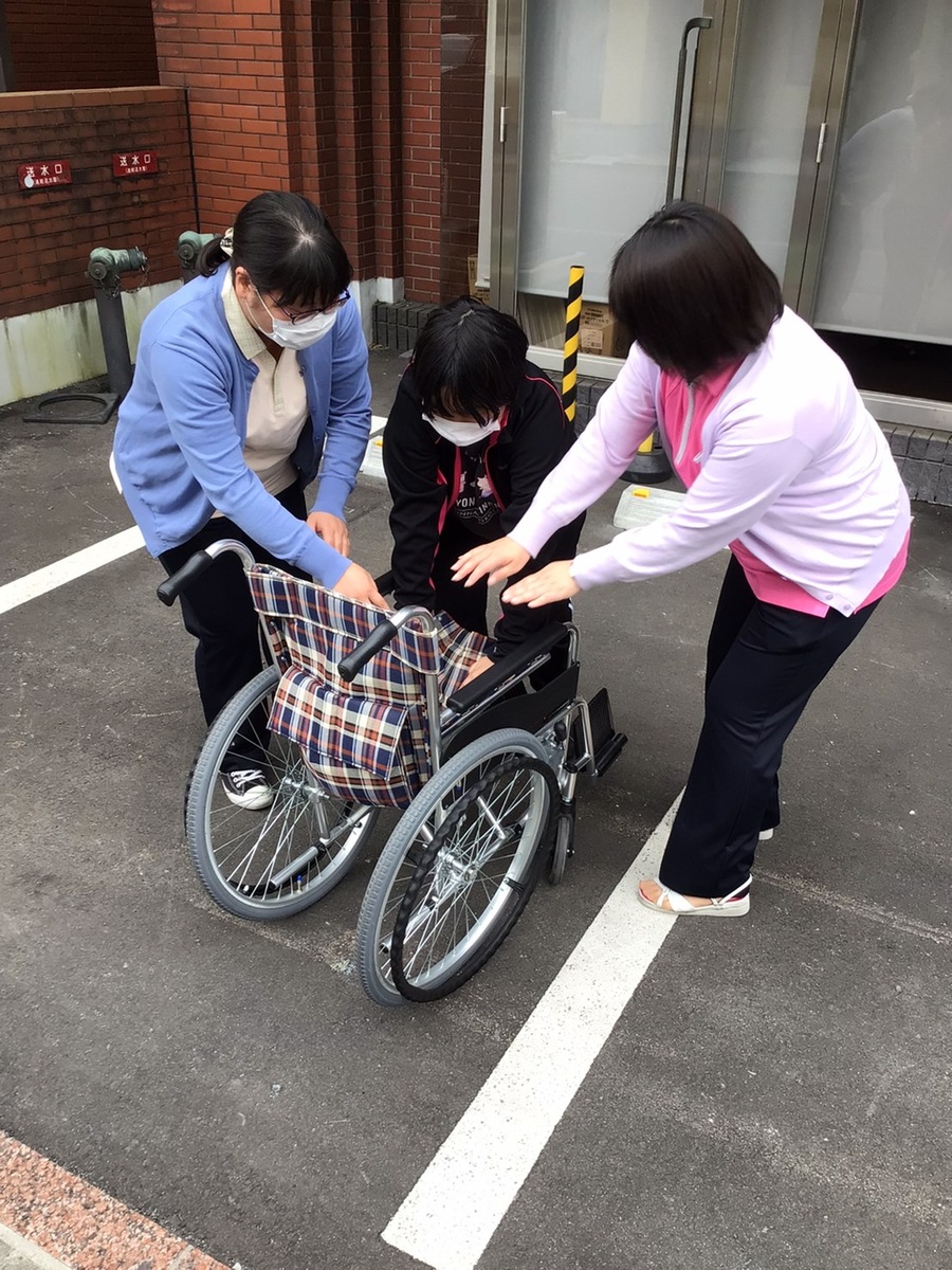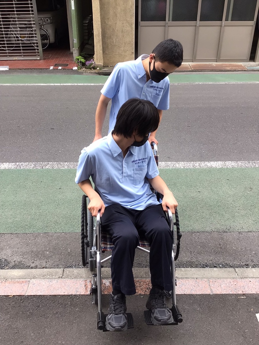 気を付けながら押しました。介助する側、される側、両方の気持ちを理解することで安心・安全な介助ができます❀学校に戻ってから意見交換をしながら振り返りを行いました。とても良い経験ができたようです☺