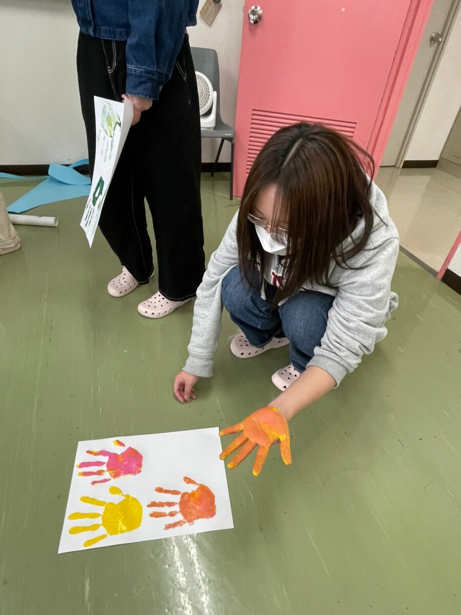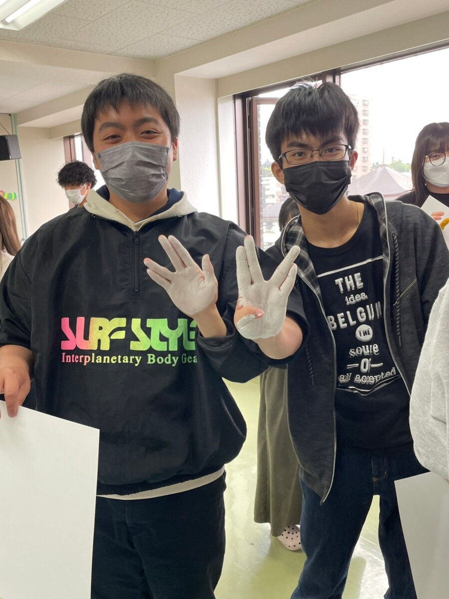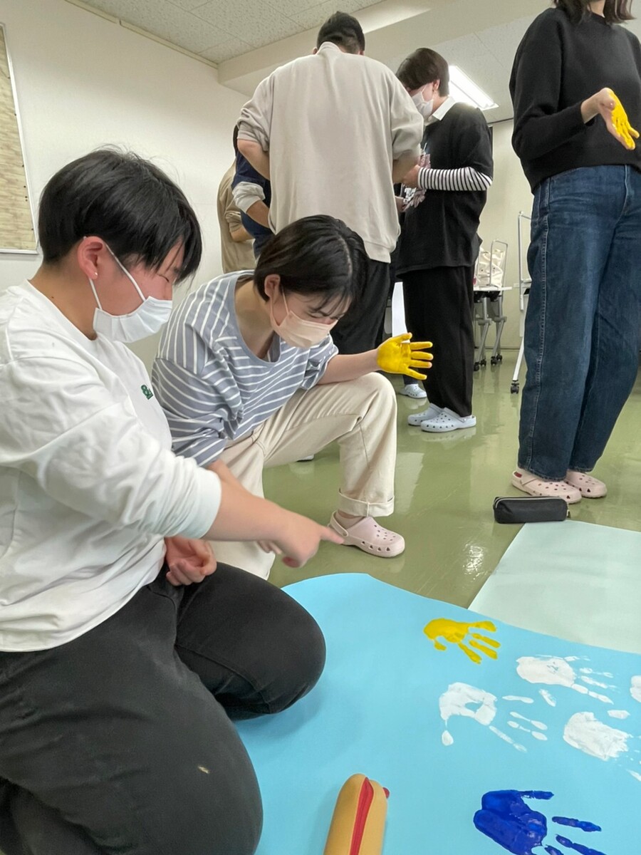 保育士になったら子どもたちとこんなことをやりたい!という思いを形にしていく中で、色と色を混ぜてできる新しい色の発見や実際に行うことの難しさにも気が付いていきます