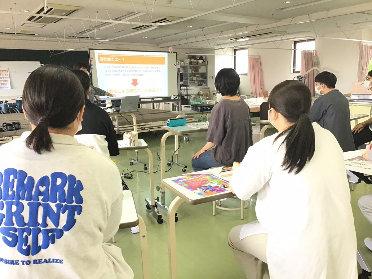 認知症VR体験授業を行いました。前半は「認知症とは?」や「四大認知症」など認知症についての講義を受けました。後半はVR機器を使って、認知症の方々からみた世界観を臨場感たっぷりで体験することにより、認知症の方々が持つ気持ちや考えを理解することができました。