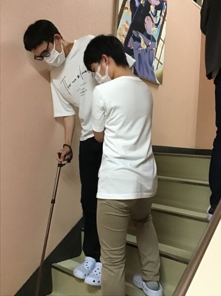 続いて階段の上り下り介助。