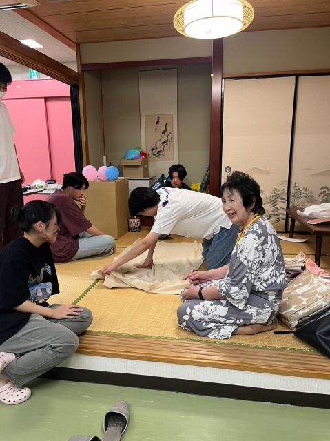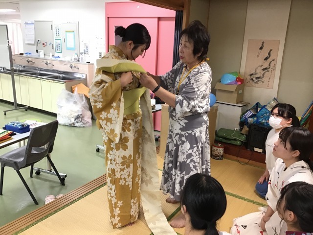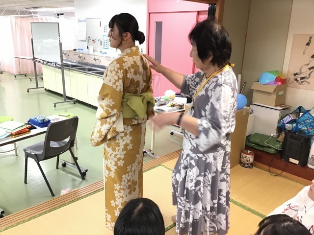 介護福祉学科2年生の家政学の授業で浴衣の着付け教室をしました。