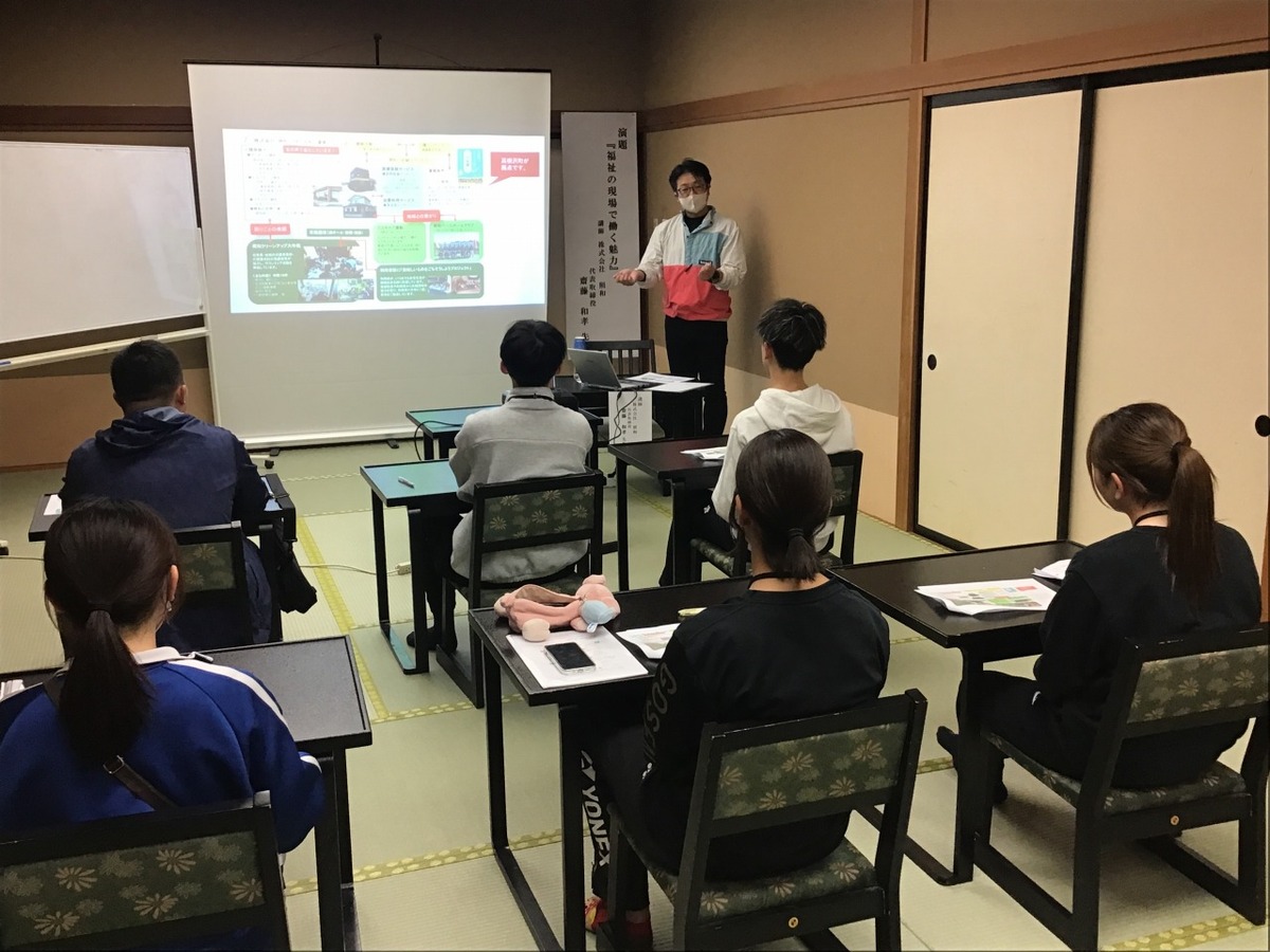 まずは学科別オリエンテーションが行われました、斎藤和孝先生から「福祉の現場で働く魅力」についての講話が行われました。先生の温かな言葉に、新入生たちは一層意欲を高めていました。