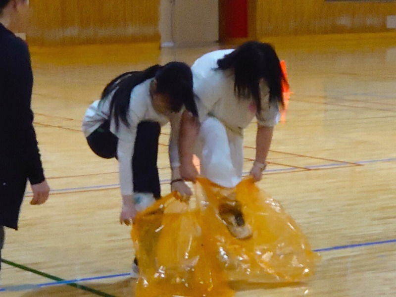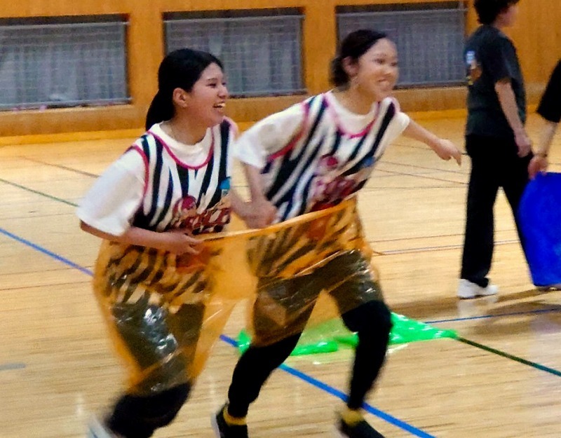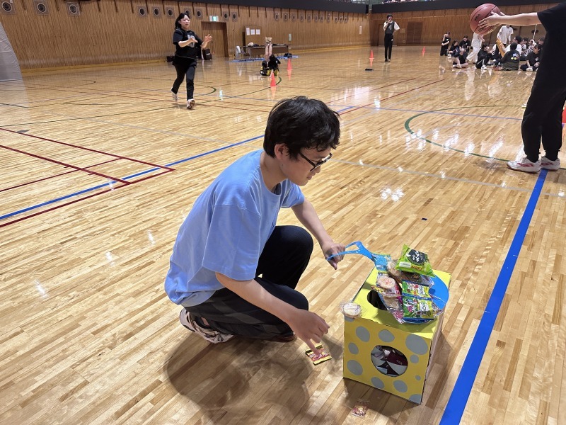 障害物競争:スピードとチームワーク、そして運が試される障害物競争。学生たちは全力で走り抜けたりバールを投げたり、お菓子をゲットしました。