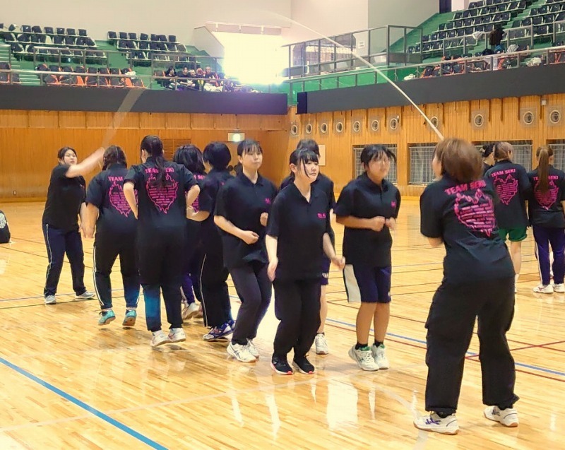 大縄跳び:チームで一斉に縄跳びをする姿は圧巻。タイミングを合わせるための練習の成果が発揮されました。
