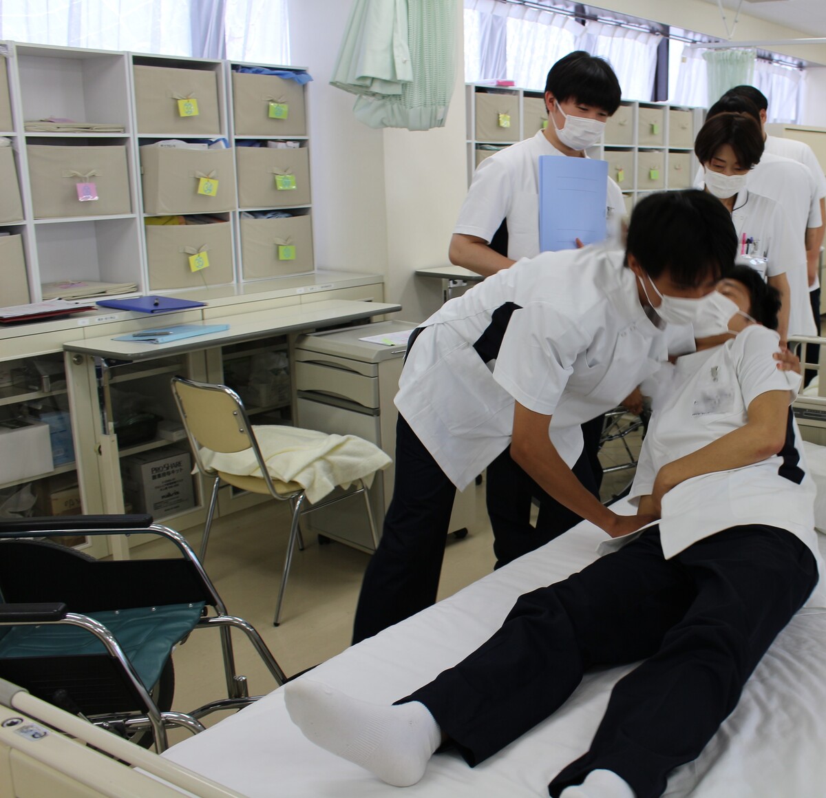 体位変換と離床介助の演習を行いました。