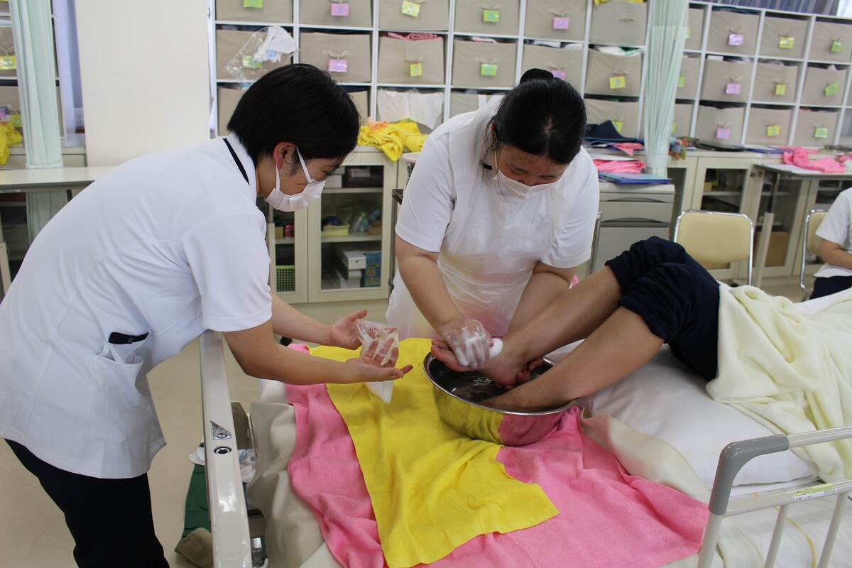 足浴の技術演習を行いました。